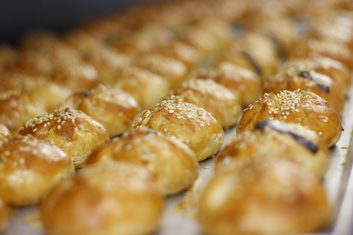 表皮上有芝麻的为鸡肉烧包,无芝麻的则为猪肉烧包。